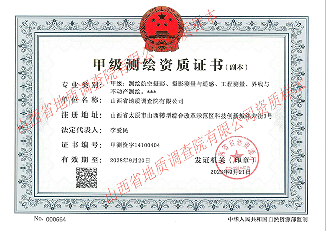 研究院始終堅持“質量第一,誠信為本,勇于創新”的宗旨,原始資料及成果報告優良率100%,優秀率達75%。完成的西藏1∶25萬土則崗日幅、山西1∶25萬忻州市幅區域地質調查獲國土資源部科學技術二等獎;在全國優秀圖幅展評中1∶25萬忻州市幅獲一等獎,1∶25萬托和平錯、應縣幅及1∶5萬御棗口幅獲二等獎,1∶25萬岢嵐縣幅、臨汾市幅、侯馬市幅等6個項目獲三等獎,其中1∶25萬、應縣幅、岢嵐縣幅、侯馬市幅獲中國地質調查成果二等獎。